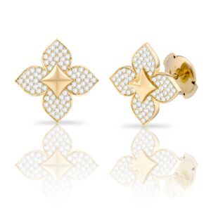 • LOTUS BLOOM EARRINGS – Yellow Gold with White Diamonds