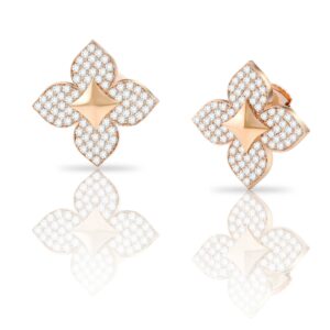 • LOTUS BLOOM EARRINGS – Rose Gold with White Diamonds